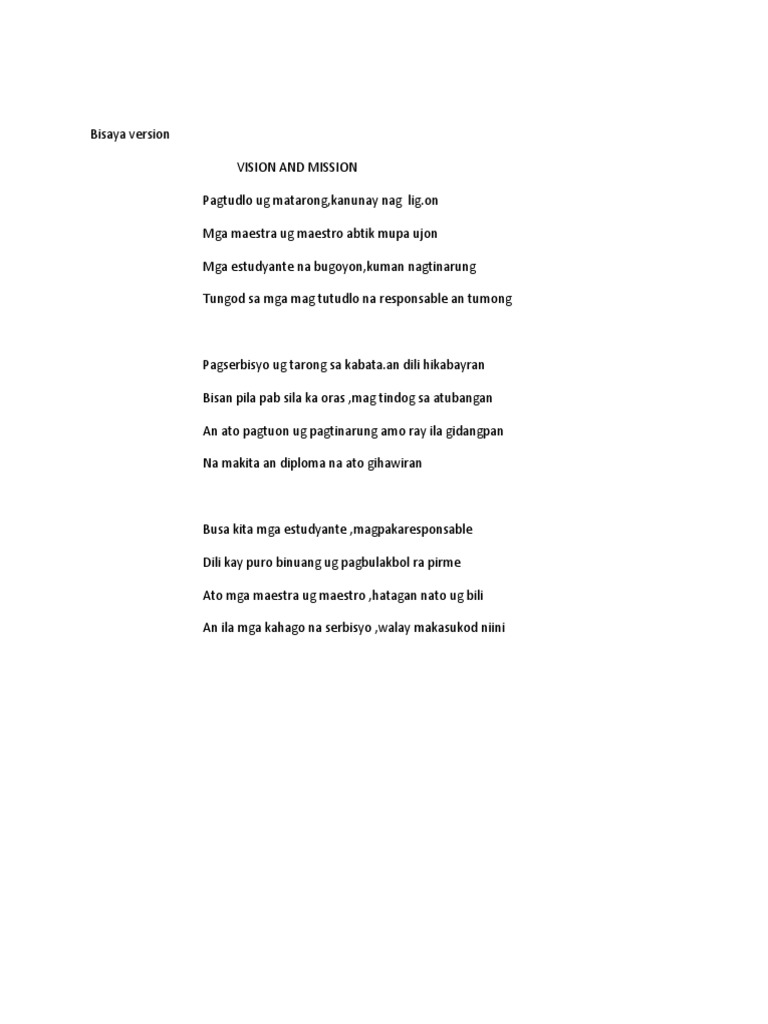 Kailangan mong maging gurot estudyante para may matutunan Batid kong marami talaga ngayon ang lubos na nahihirapan Estudyante man o guroy apektado sa nararanasan Sanay bumalik na sa normal ang dating makulay na mundo Upang mga guroy hindi na mahirapan sa pagtuturo. Paghimas ng ina sa ulo ng sanggol. Kailangan ng edukasyon ng buong bayan Ng mga isyu at usaping pangkalikasan Sa gayoy mamulat ang maraming mamamayan Na ang kalikasan palay dapat alagaan.