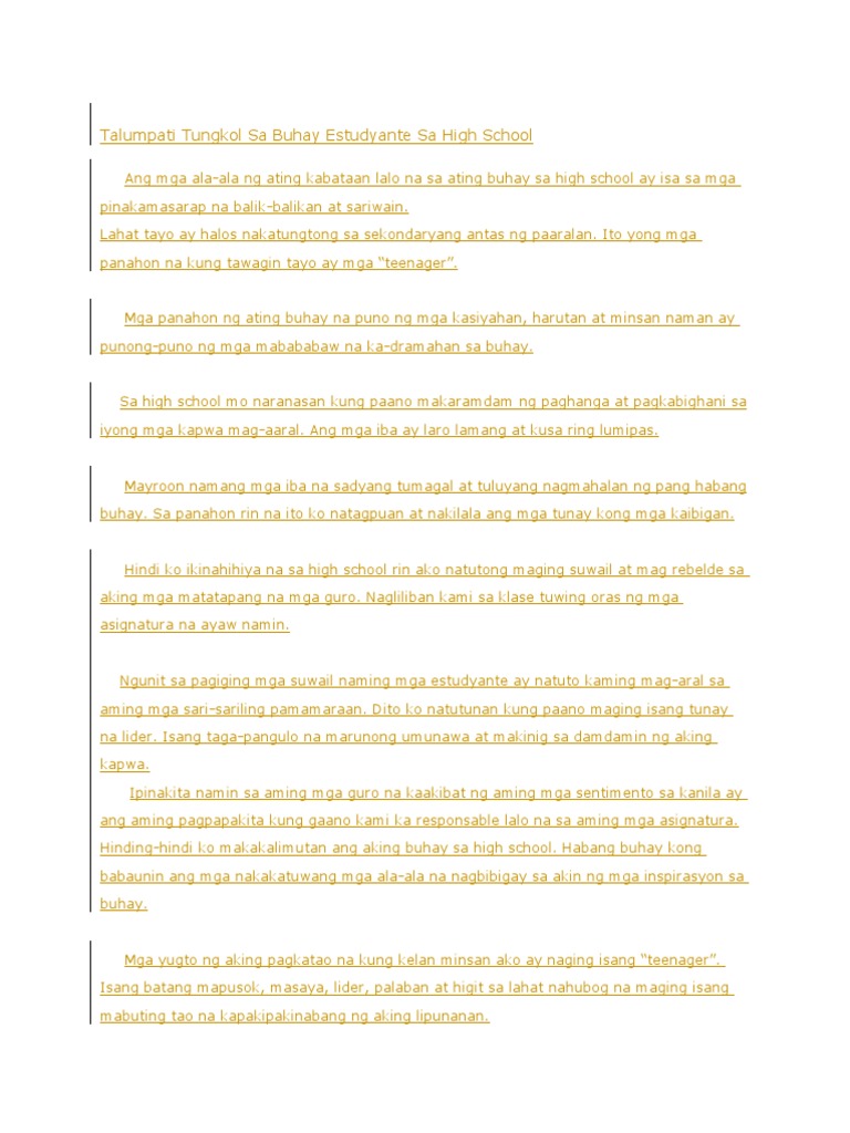 BUOD NG KATHA Uminog ang istorya sa buhay ni Mabuti isang guro habang kinukwento mula sa punto de vista ng isa sa kanya ng mga estudyante. The Healing Priest 2020 and Damaso 2019. Buhay Estudyante Ang buhay ng isang estudyante ay parang gulong minsan nasa baba ka minsan natasaas ka minsan angat ka minsan ay hindi.