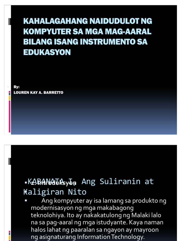 Kahalagahang Naidudulot Ng Kompyuter Sa Mga Mag Aaral Bilang Pdf