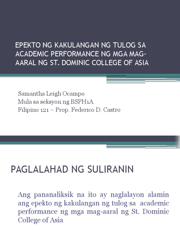 Epekto Ng Kakulangan Ng Tulog Sa Academic Performance Pdf
